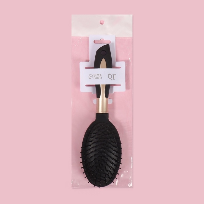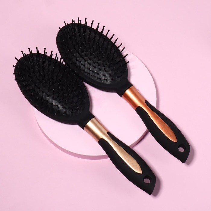 Расчёска массажная, прорезиненная ручка, 8 × 24 см, цвет чёрный/золотистый
