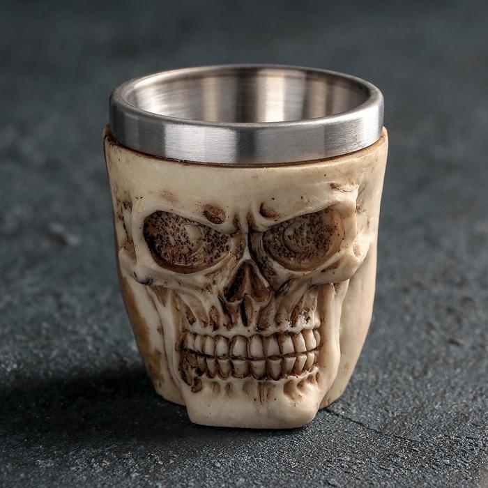 Стопка из нержавеющей стали «Череп. Хэллоуин», 60 мл, цвет бежевый