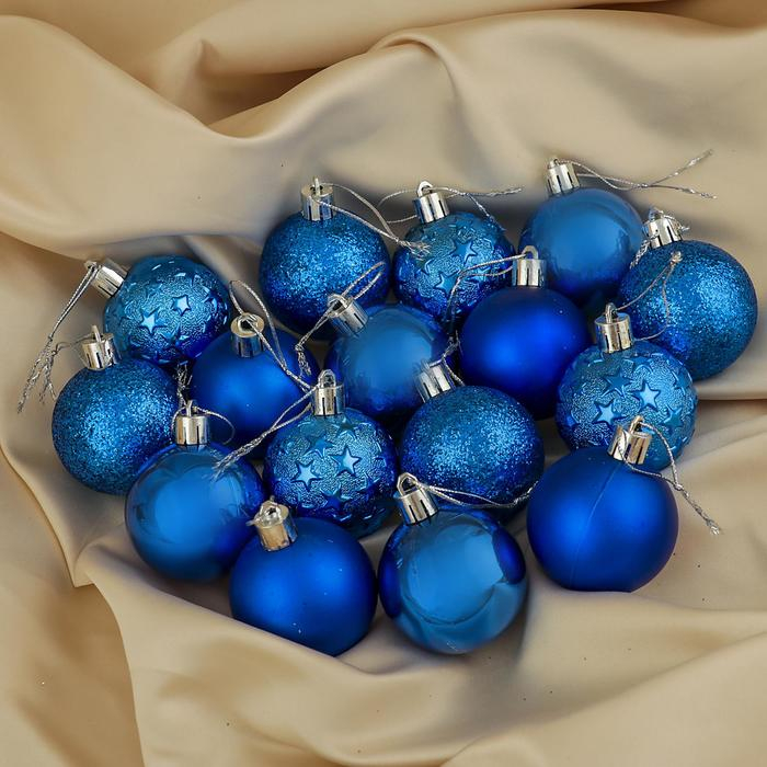 Набор шаров пластик d-5 см, 16 шт "Звёздная ночь" синий