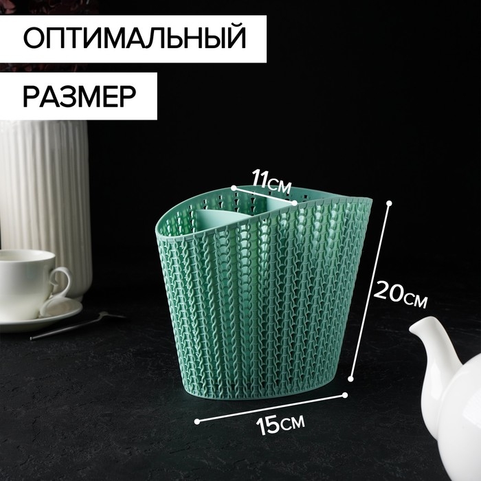 Подставка для столовых приборов «Вязание», цвет фисташковый