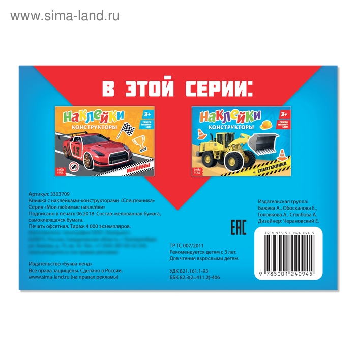 Наклейки конструкторы «Спецтехника», 12 стр.
