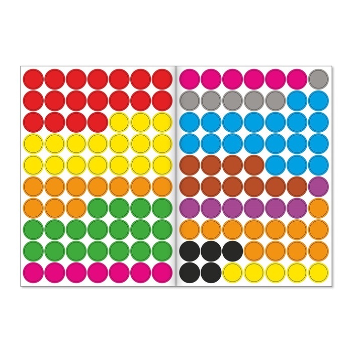- Крупные кружочки удобно держать и отклеивать малышам, которые ещё только осваивают этот вид творчества.