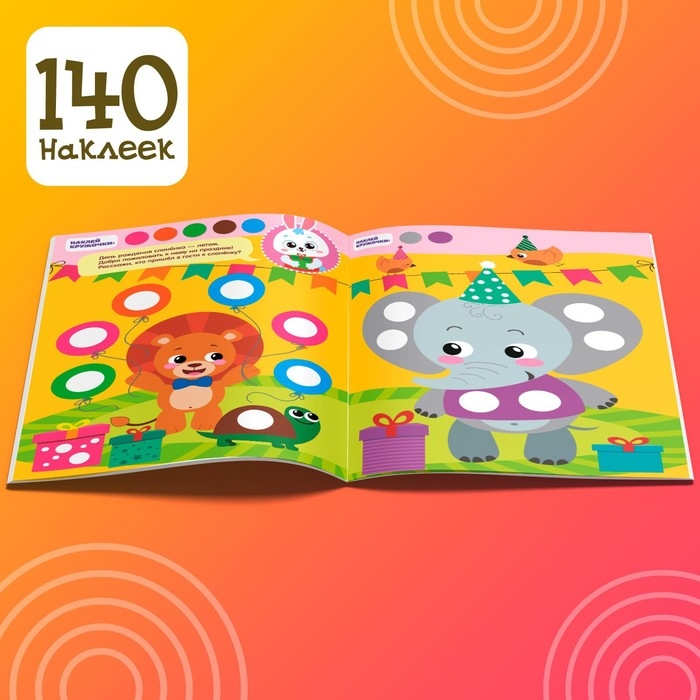 - Красочные картинки и милые персонажи подсказывают, куда именно нужно прикрепить наклейку-кружочек.