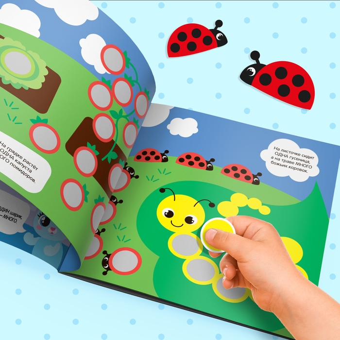Книга с наклейками-кружочками создана для самых маленьких читателей. Приклеивая яркие кружочки, ребёнок узнает многое об окружающем его мире и потренирует ловкость пальчиков, внимательность и аккуратность.