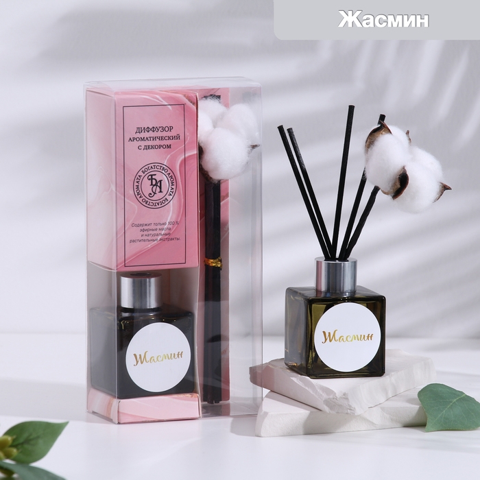 Диффузор ароматический с цветком хлопка "Нежный", 50 мл, жасмин, "Богатство Аромата"