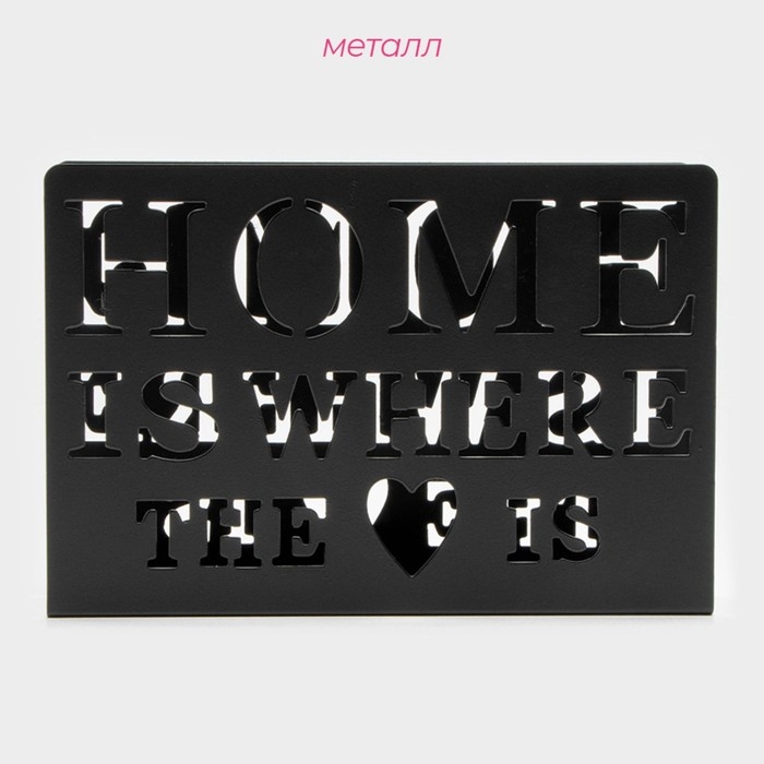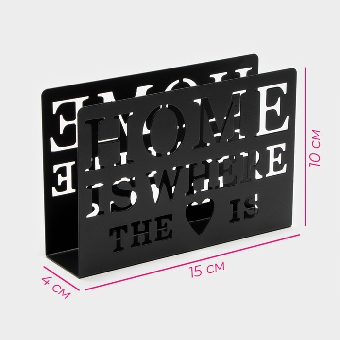 Салфетница Доляна «Дом здесь», 15×4×10 см, цвет чёрный