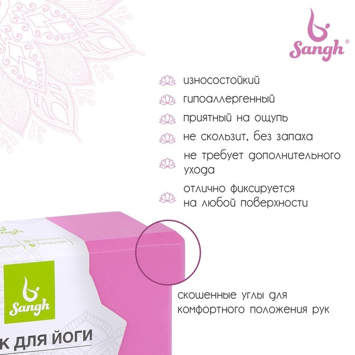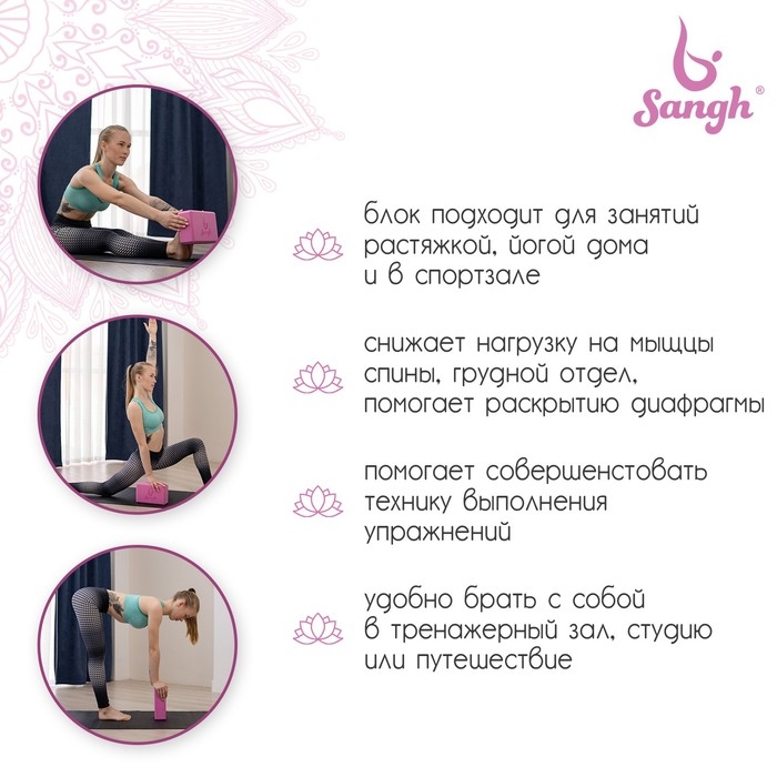 Блок для йоги Sangh, 23×15×8 см, цвет фиолетовый