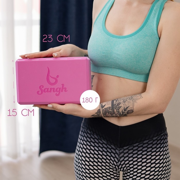 Блок для йоги Sangh, 23×15×8 см, цвет розовый