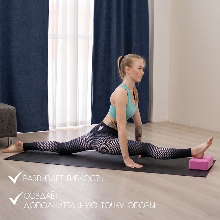 Йога-блок (йога-кирпич) нужен для создания дополнительной точки опоры. Он помогает развивать гибкость постепенно, без лишнего напряжения в мышцах и суставах. Необходим для тех, кто только начинает заниматься йогой, и кому не достает гибкости, чтобы иметь правильную опору для рук и ног при выполнении асан.