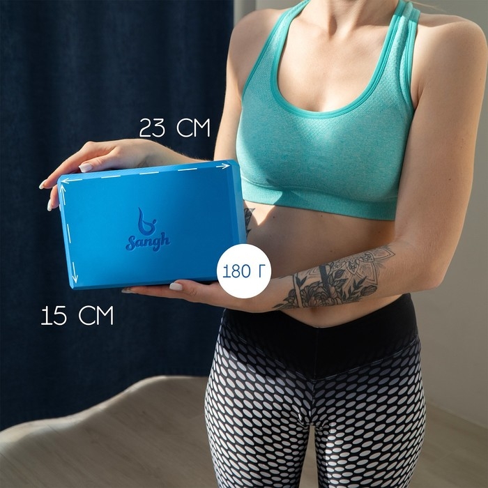 Блок для йоги Sangh, 23х15х8 см, цвет синий