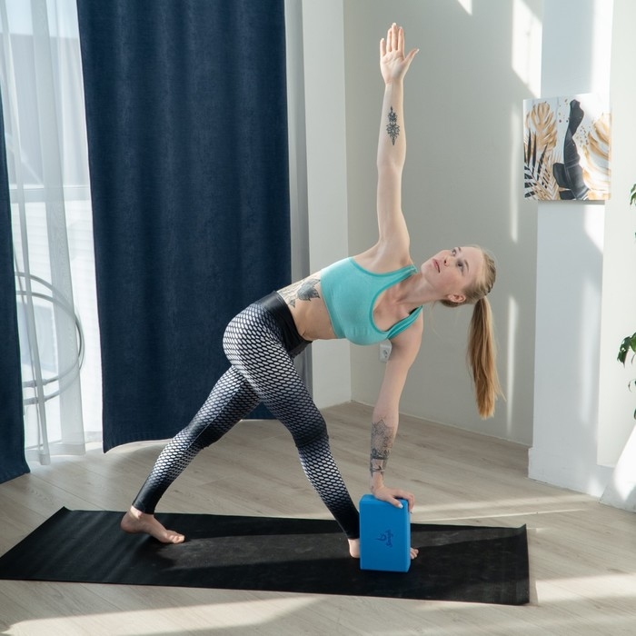 Йога-блок (йога-кирпич) нужен для создания дополнительной точки опоры. Он помогает развивать гибкость постепенно, без лишнего напряжения в мышцах и суставах. Необходим для тех, кто только начинает заниматься йогой, и кому не достает гибкости, чтобы иметь правильную опору для рук и ног при выполнении асан.