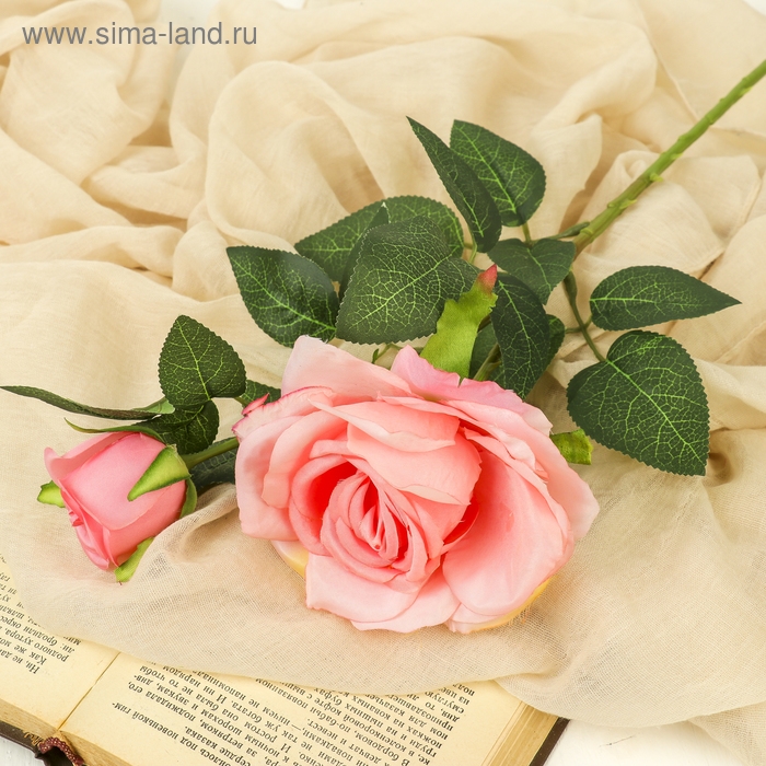 Цветы искусственные "Роза двойная Эвридика" 10х46 см, розовый