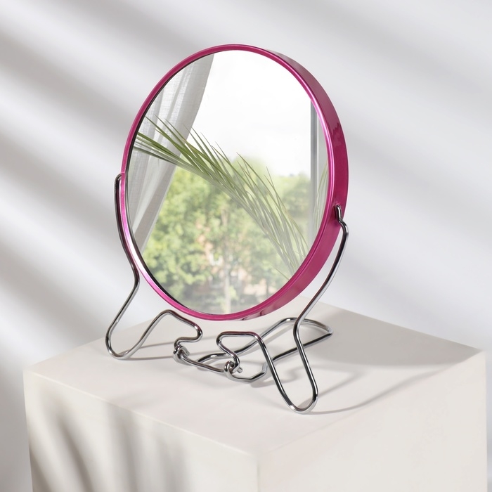 Зеркало на ножке «Овал», двустороннее, зеркальная поверхность 13,5 × 16,5 см, цвет МИКС