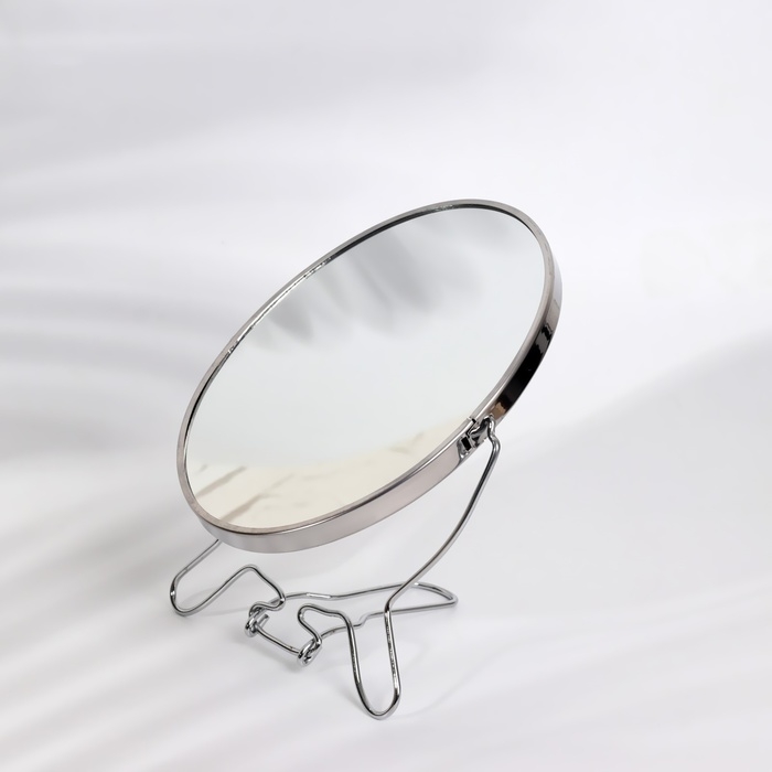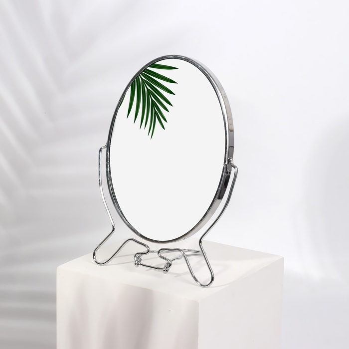 Зеркало настольное - подвесное «Овал», двустороннее, с увеличением, зеркальная поверхность 11,5 × 15,5 см, цвет серебряный