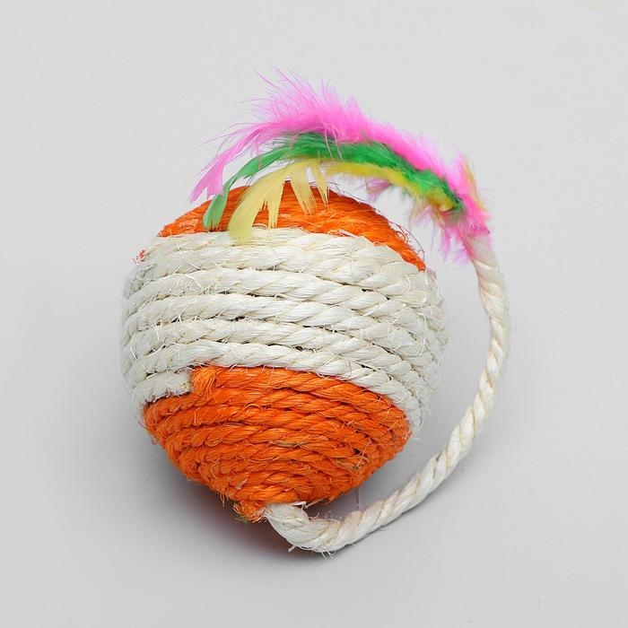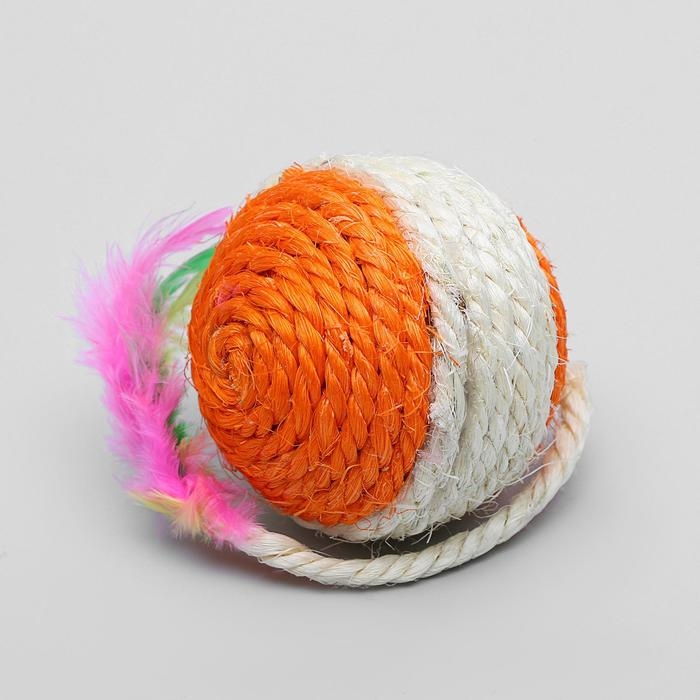 Шар из сизали с перьями "Лоретта", 6.5 см, микс цветов