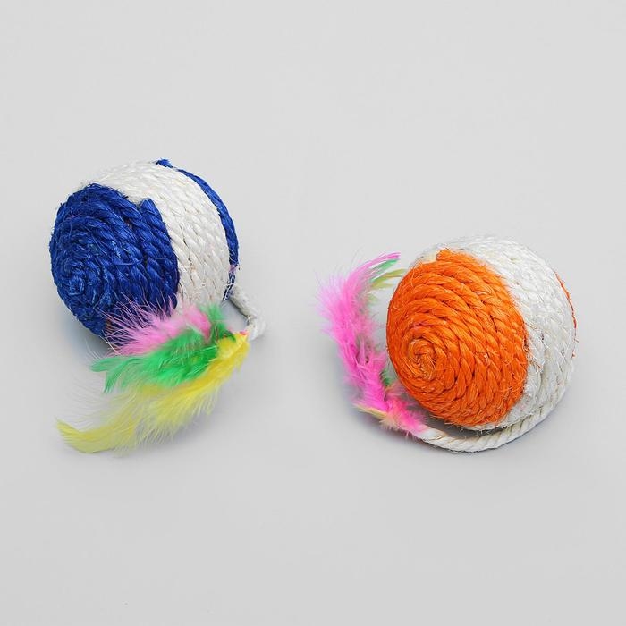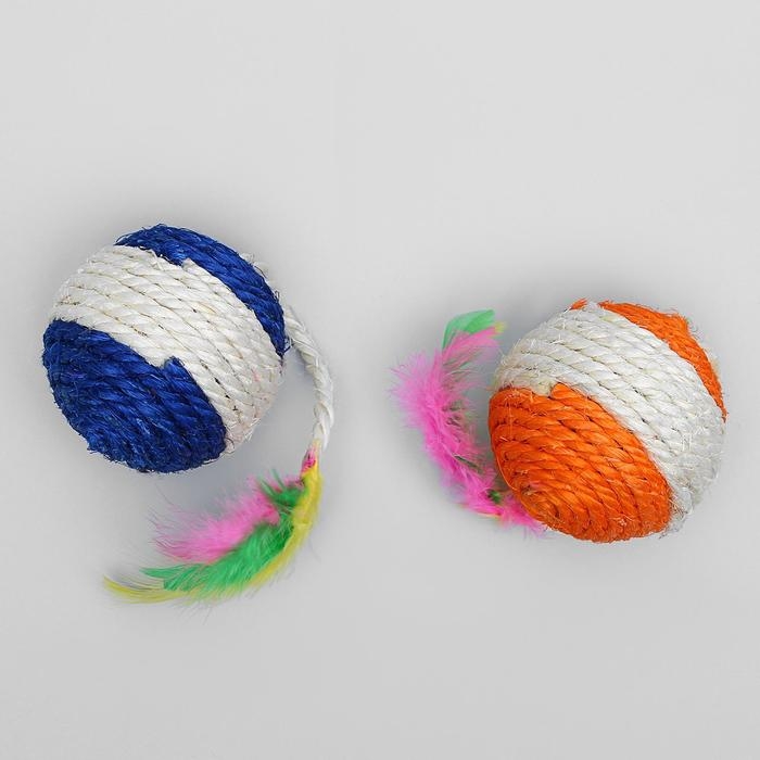 Набор из 2 игрушек "Полосатые шарики с перьями", диаметр шара 3,8 см, микс цветов