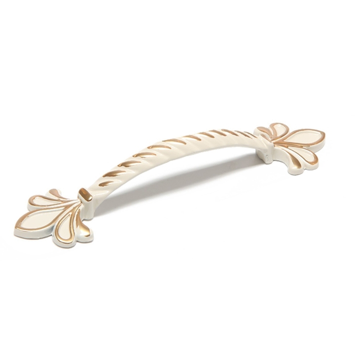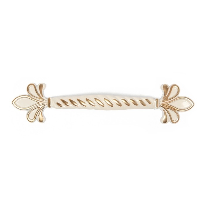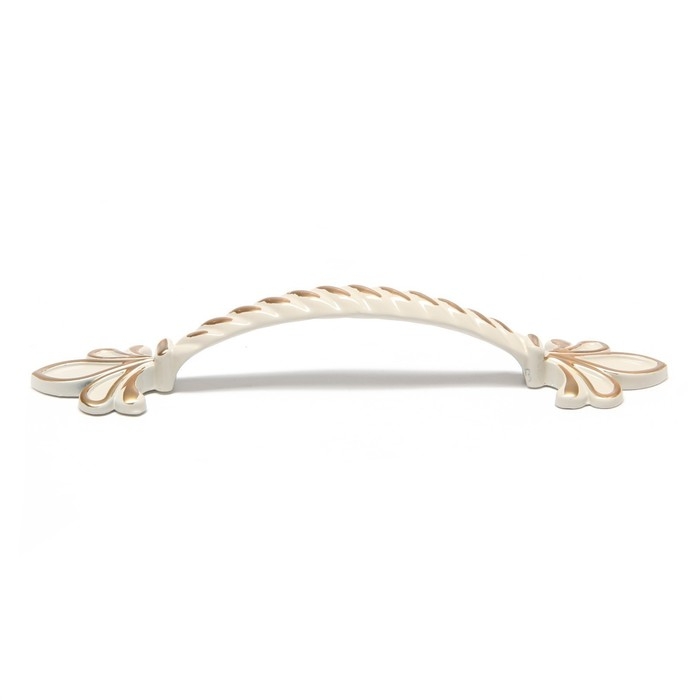 Интересный дизайн ручки сочетается с различными типами мебельного гарнитура. Фурнитура имеет привлекательный внешний вид и компактный размер. Белый оттенок с золотистыми вставками идеально подходит к мебельным фасадам в различной цветовой гамме.