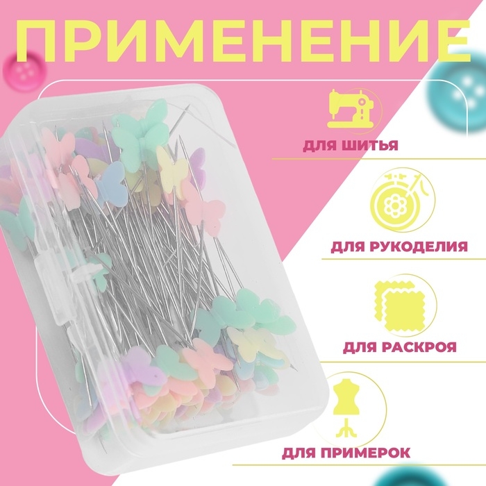 Портновские булавки с разноцветным верхом станут помощниками в процессе раскройки ткани и примерки одежды. Удобные булавки помогут исправить небольшие изъяны или придадут изделию новую форму.
