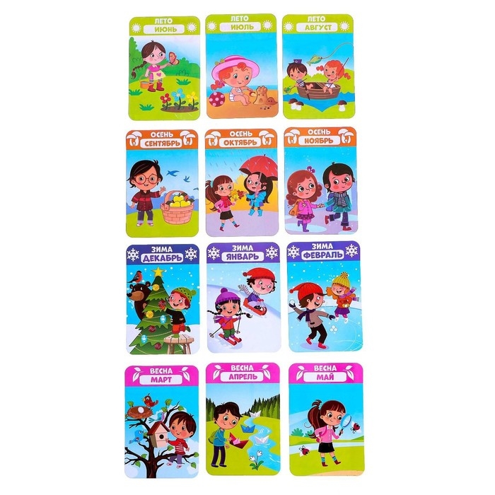 - Разложите карточки в один ряд от января до декабря.