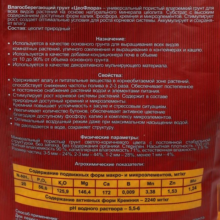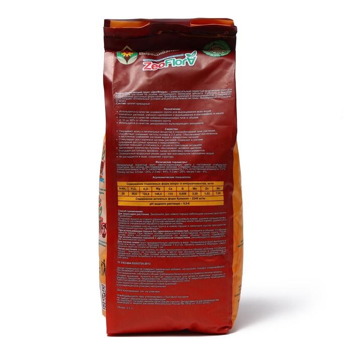 Субстрат минеральный ZeoFlora для растений, цеолит, почвоулучшитель, 2.5 л, влагосберегающий грунт, фракция 1-3 мм