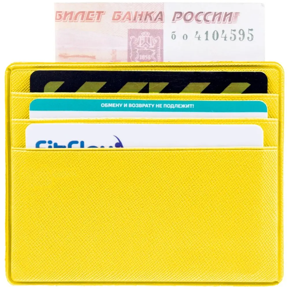 Чехол для карточек из искусственного материала, имитирующего сафьяновую кожу, с шестью отделениями для кредитных карт и одним — для сложенных купюр.