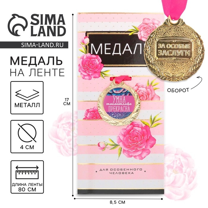 Медаль женская «Умна, талантлива, прекрасна», d=4 см
