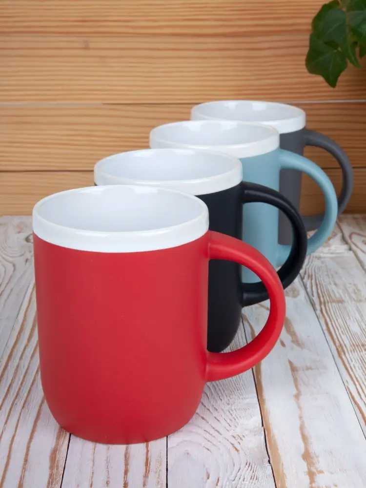 Матовая кружка Borde с белым глянцевым ободком по краю привлекает внимание ярким дизайном и лаконичной формой. Оптимальный объем и эргономичная ручка делают эту кружку удобной для ежедневного использования.