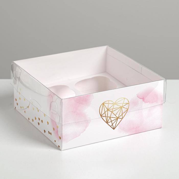 Коробка для капкейков, кондитерская упаковка, 4 ячейки «Для тебя», 16 х 16 х 7.5 см