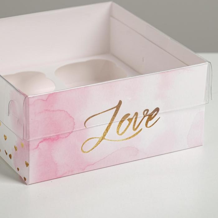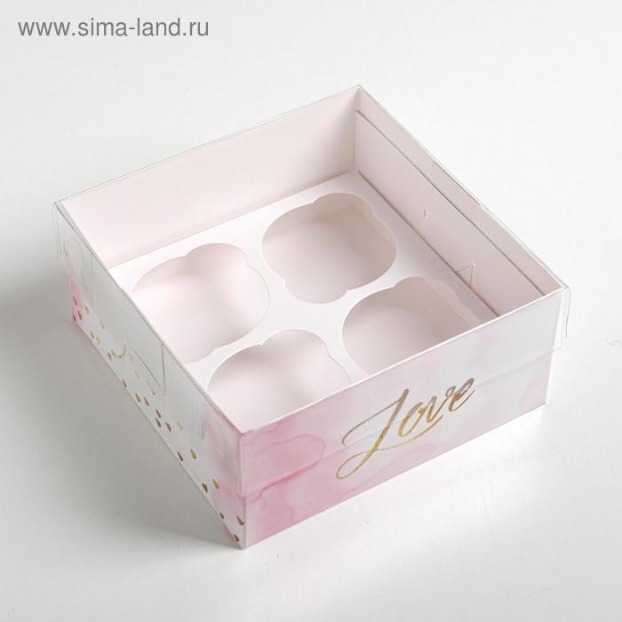 Коробка для капкейков, кондитерская упаковка, 4 ячейки «Love», 16 х 16 х 7.5 см