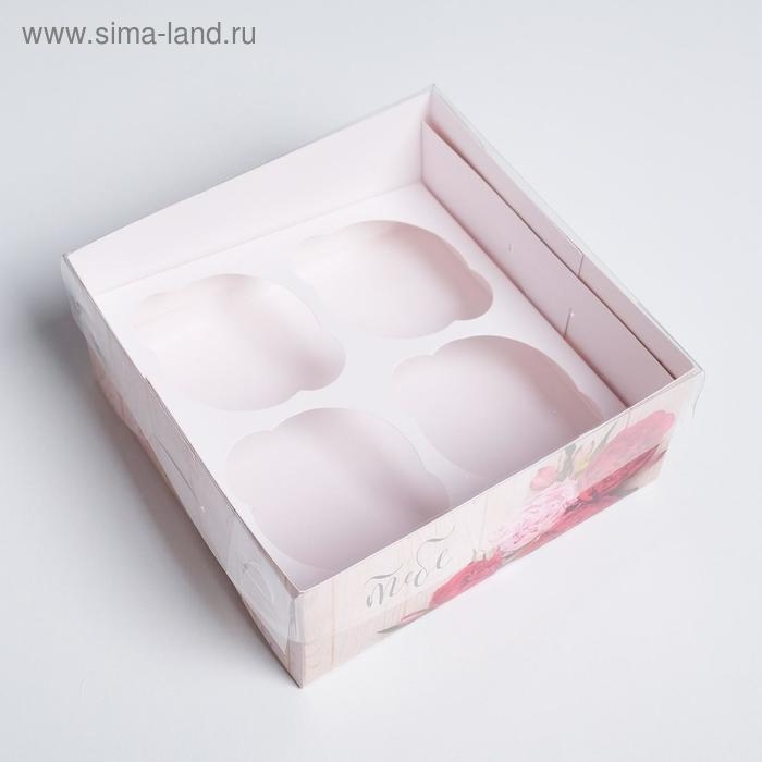 Коробка для капкейков, кондитерская упаковка, 4 ячейки «Для тебя», 16 х 16 х 7.5 см