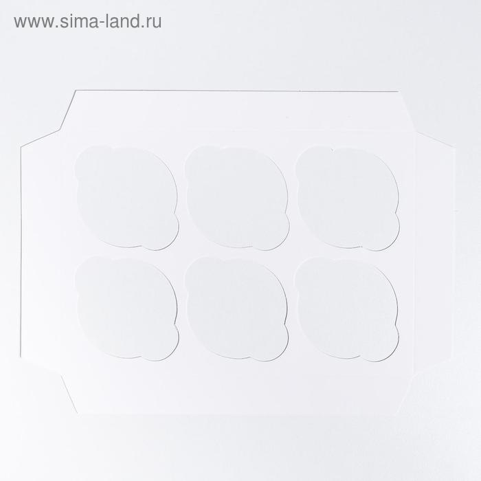 Коробка на 6 капкейков с окном, белая, 25 х 17 х 10 см