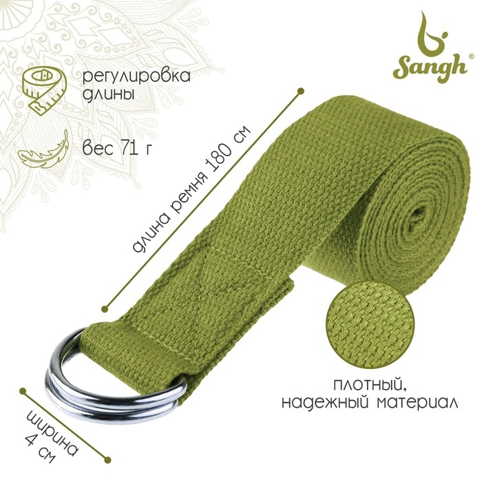 Ремень для йоги Sangh, 180×4 см, цвет зелёный