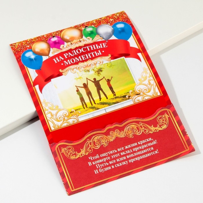 Конверт для денег, открытка на День Рождения «Вклад Именинный», 6 листов, 16,5 х 21,5 см.