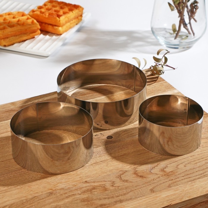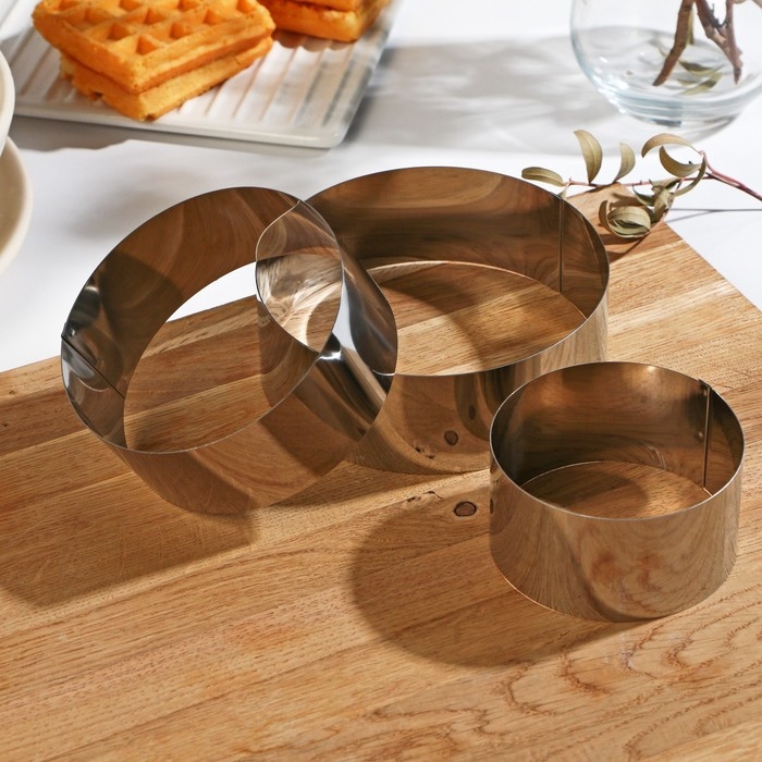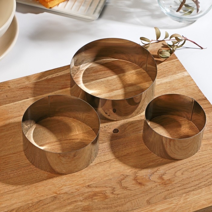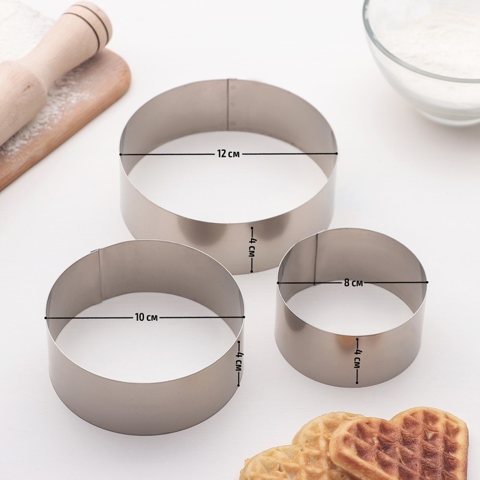 Набор форм для выкладки и выпечки «Круг» KONFINETTA, 3 шт, d=8 см, d=10 см, d=12 см, цвет серебристый