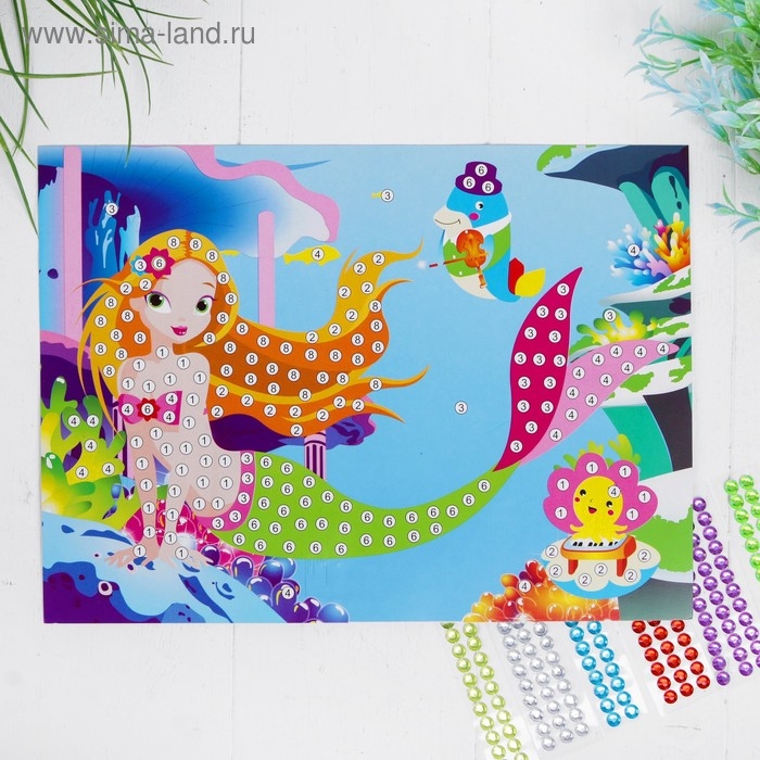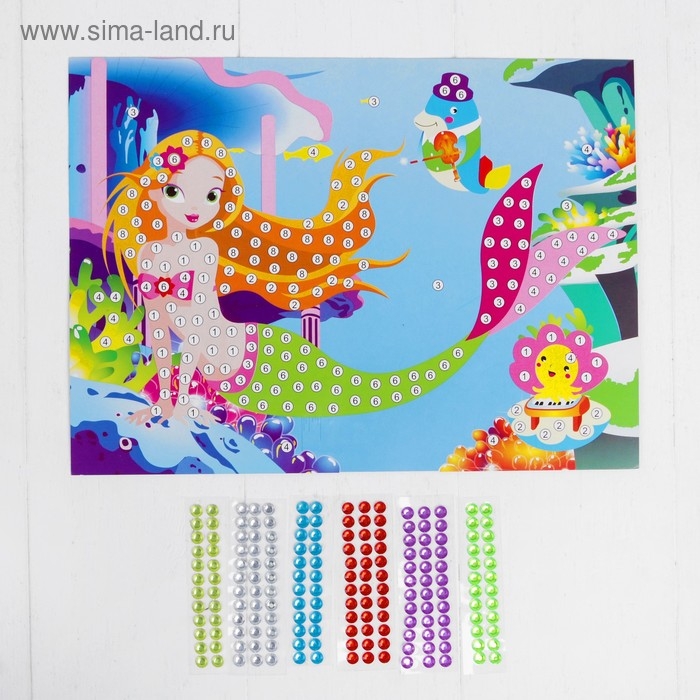 Аппликация круглыми стразами — это чудесный творческий тренажёр для детей от 3 лет. Вы сможете вместе с ребёнком провести совместный досуг за картиной и создать яркий, забавный рисунок, которым потом можно будет украсить интерьер детской спальни. Стразы прикрепляются на обозначенные цифрами поля, благодаря чему ребёнок тренирует внимание, мелкую моторику, а так же счёт и усидчивость.
