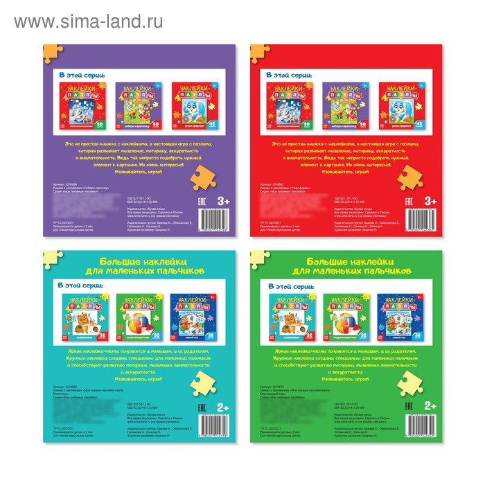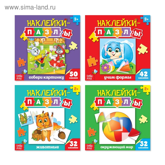 Наклейки-пазлы набор, 4 шт. по 12 стр.