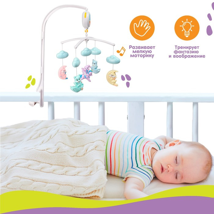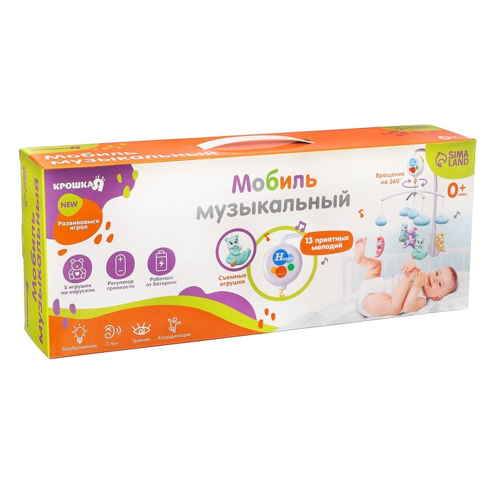 Мобиль музыкальный на кроватку «Облака. Лодочки», работает от батареек, Крошка Я