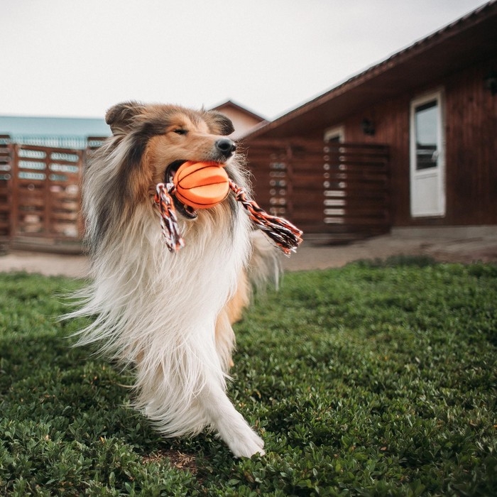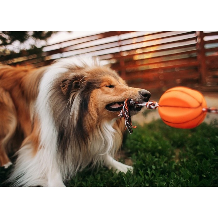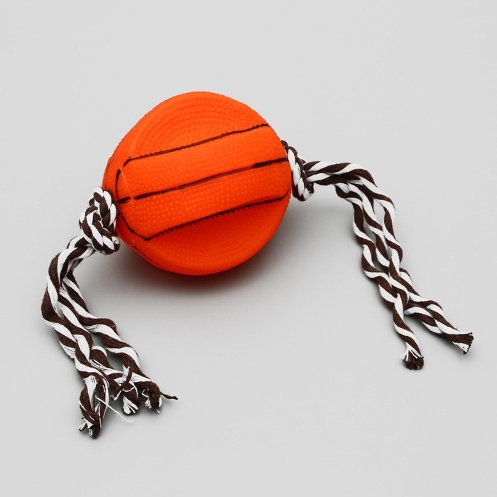 Игрушка на канате "Баскетбольный мяч" для собак, 9 см, микс цветов