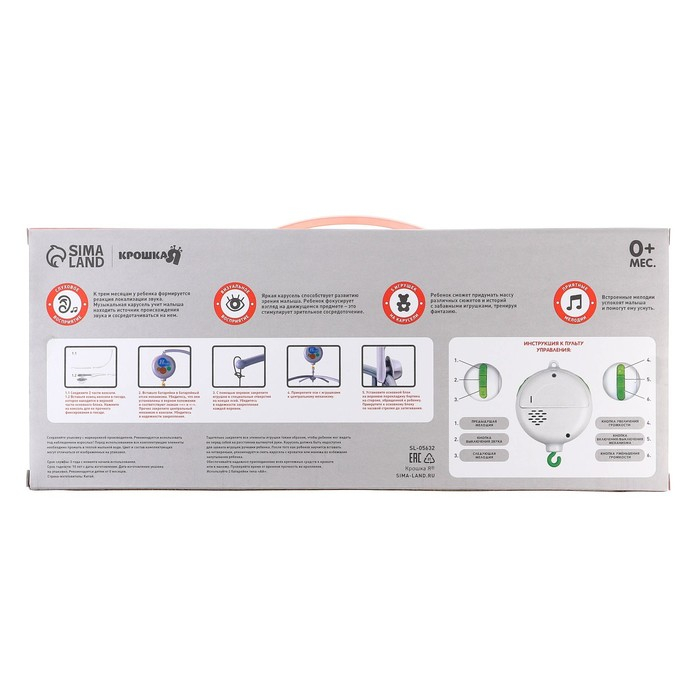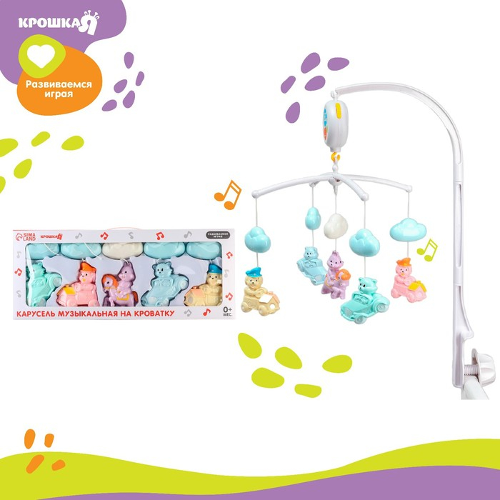 Мобиль музыкальный на кроватку «Облака. Машинки», работает от батареек, Крошка Я