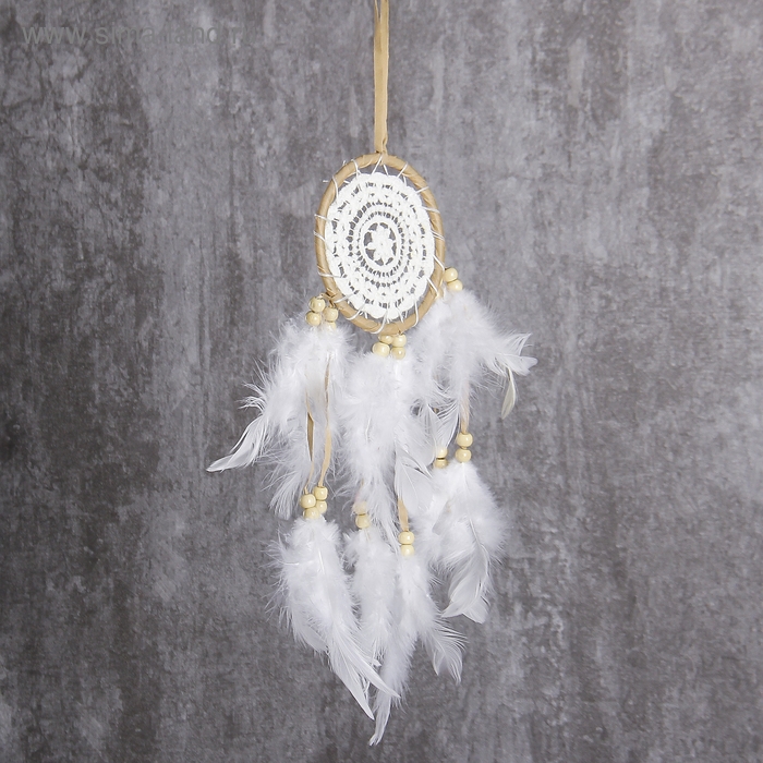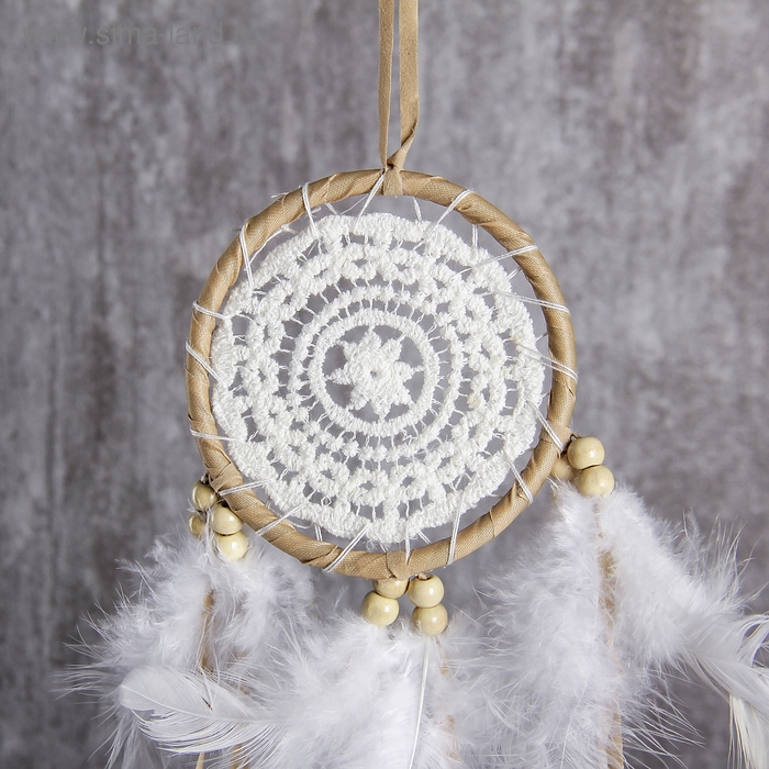 Ловец снов с кружевом "Дуновение ветра" d=8 см длина 28 см