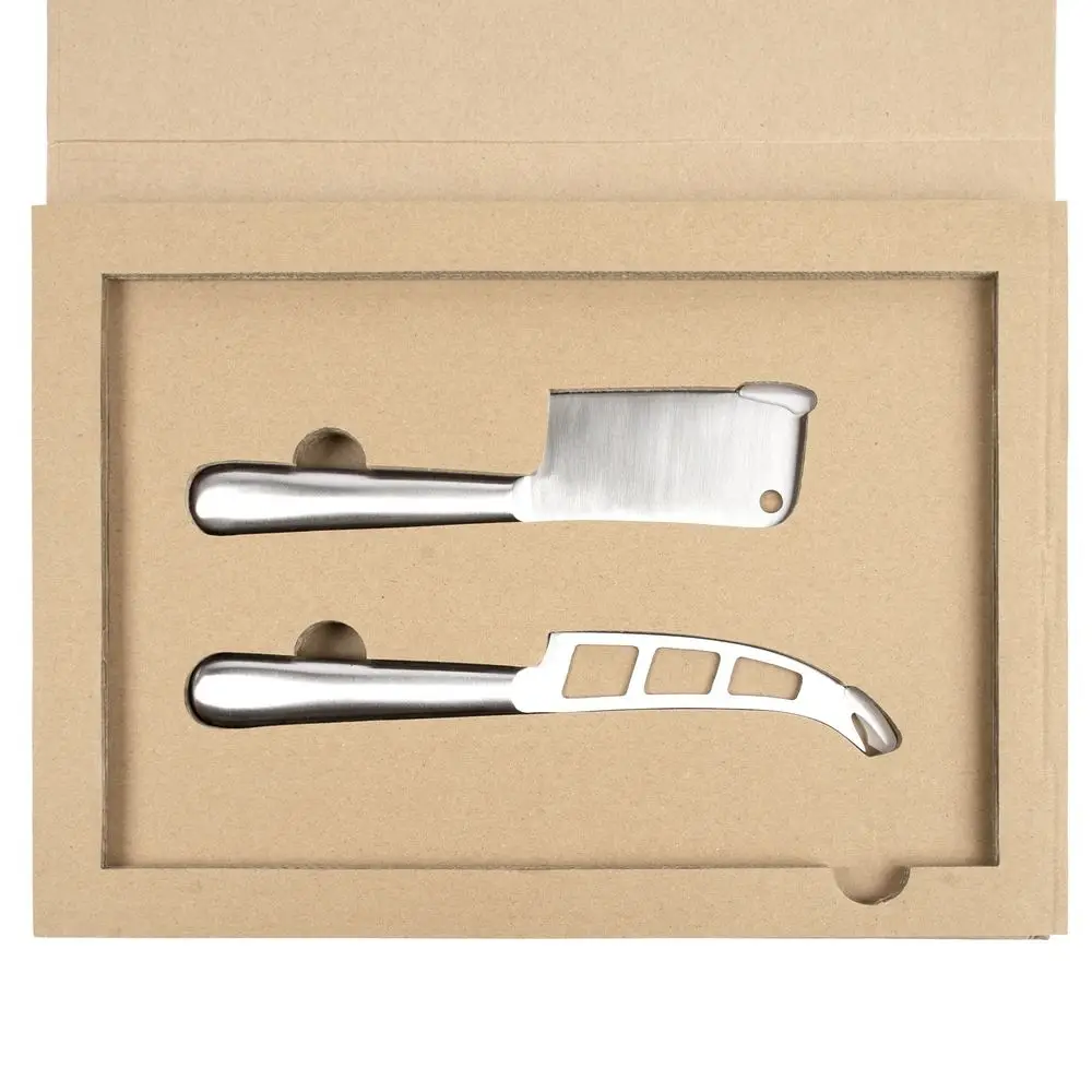 Отверстия на лезвии сырного ножа нужны для проникновения воздуха, который не дает слайсам мягкого сыра сминаться и прилипать к ножу при нарезке. Раздвоенный кончик выполняет роль вилки, которой удобно сервировать нарезанный сыр.
