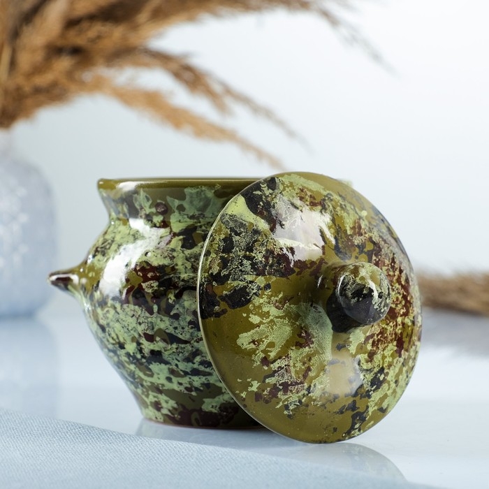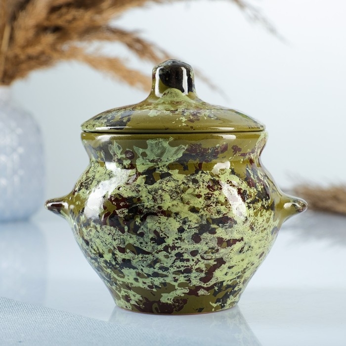 Горшок керамический для запекания №5 с ручками, 0,5л / 10х10,5см, малахит