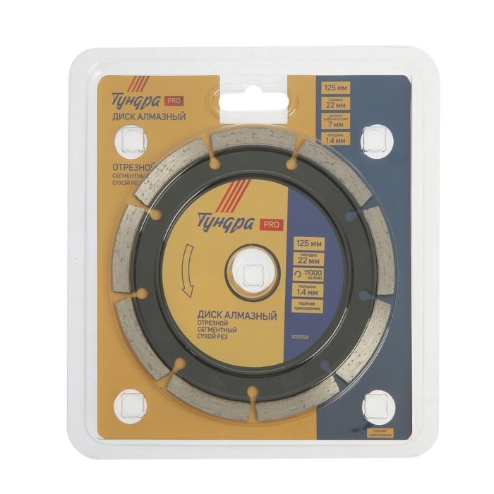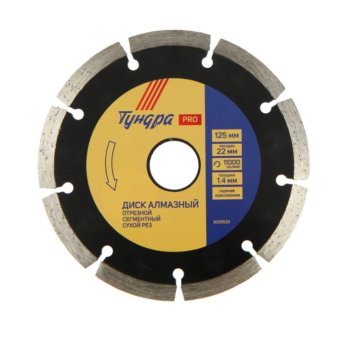 Диск алмазный отрезной ТУНДРА ПРОФИ, тонкий, сегментный, сухой рез, 125 х 1.4 х 22 мм