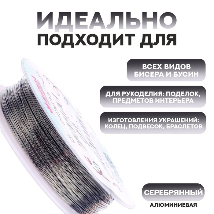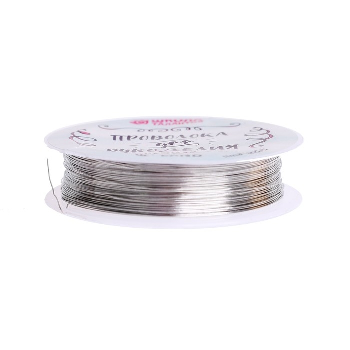 Проволока для бисероплетения D= 0,4 мм, длина 30 м, цвет серебряный