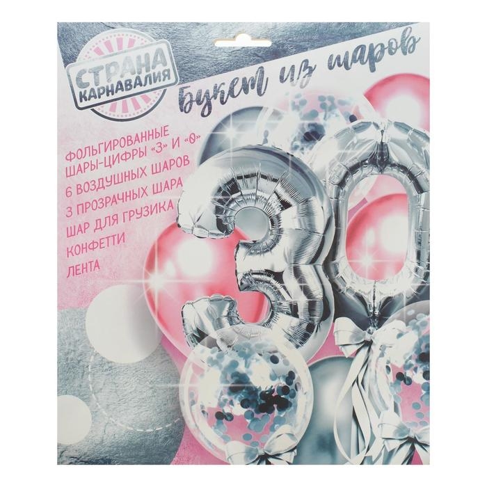 Набор воздушных шаров «30 лет», латекс, фольга, цвет серебро, 11 шт.