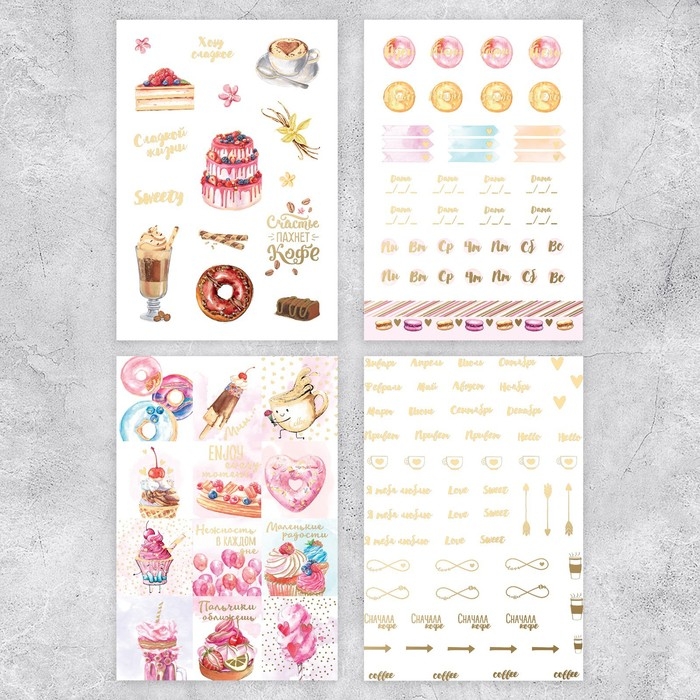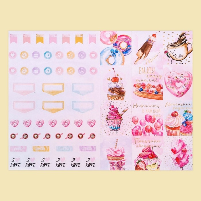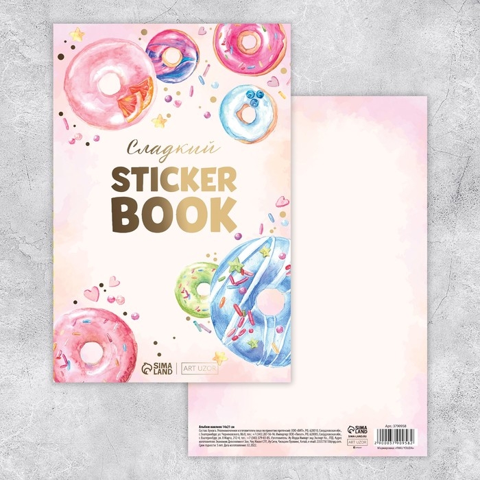 Наклейки детские в стикербуке «Сладкий», 8 листов, 14 х 21 см