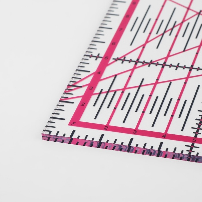 Линейка для квилтинга и пэчворка, 30 × 30 см, толщина 3 мм, цвет прозрачный/розовый
