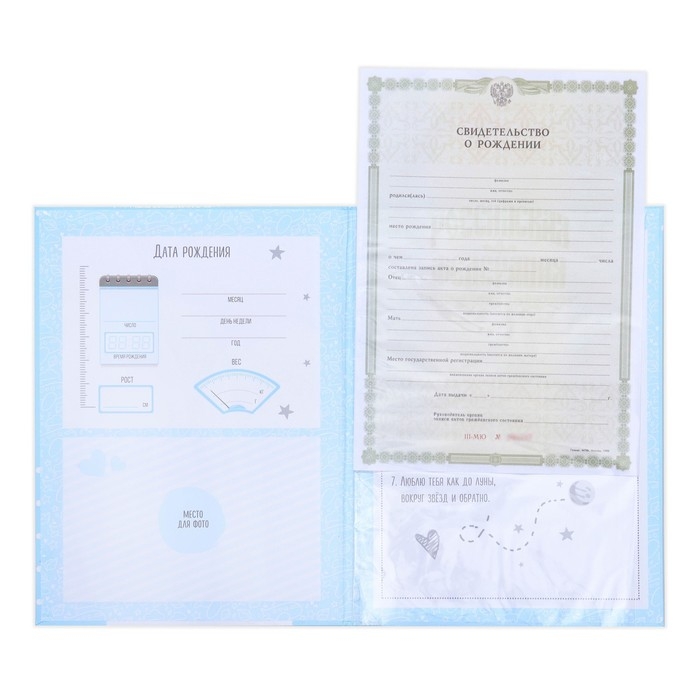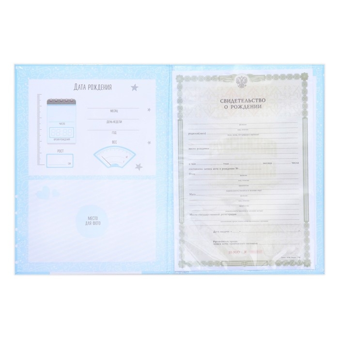 Обложка для свидетельства о рождении А4— полезный аксессуар, позволяющий хранить первый важный документ ребёнка в целости и сохранности. Материал обложки выполнен из плотного переплётного картона 1,25 мм, приятен на ощупь. Внутри — плотный файл размером А4. В такой обложке документ сохранится и не помнётся даже при активном использовании. Папка для свидетельства о рождении станет приятным и нужным подарком молодым родителям.