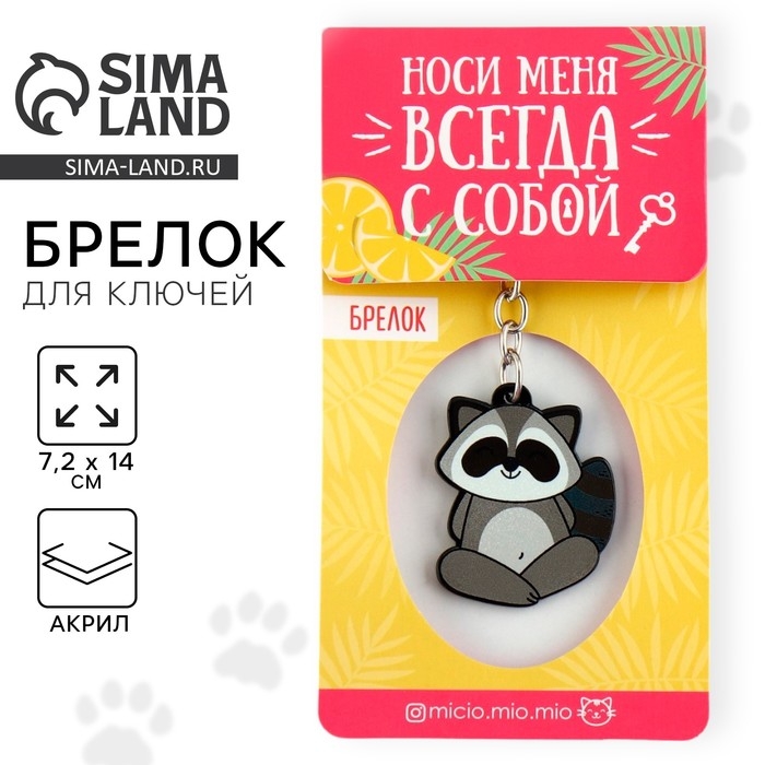 Брелок для ключей акриловый «Енот», 7.2 х 14 см