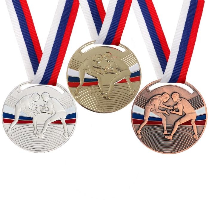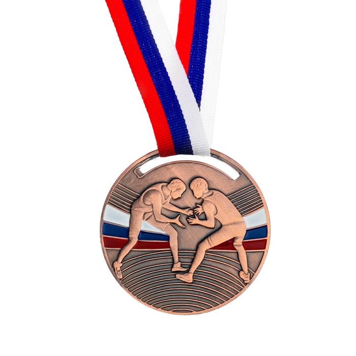 Медаль тематическая 141 «Борьба», d= 5 см. Цвет бронза. С лентой